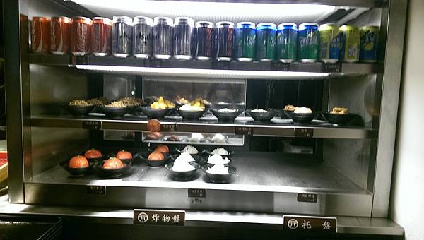 自己拿個托盤看你要吃什麼小菜自己拿